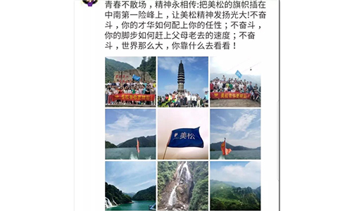 此次組織員工旅行活動是美松公司構(gòu)建企業(yè)文化、培養(yǎng)人才隊(duì)伍、完善激勵機(jī)制的重要舉措之一,同時也實(shí)踐了美松“認(rèn)真工作,享受生活”的意義,不僅陶冶了員工情操、增強(qiáng)了集體凝聚力,使員工以更飽滿的熱情投入到今后的工作中去,共同為美松發(fā)展做出更大的貢獻(xiàn)。