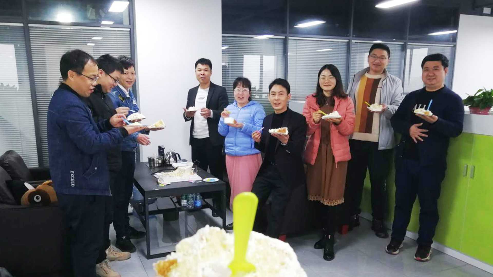 美好的時(shí)光總是短暫的,但心中記憶卻是永恒的。在今天這個(gè)特殊而又富有意義的日子,同事們彼此分享蛋糕的同時(shí),用笑容傳遞出的青春味道,甜蜜而美好!也為一整天的辛勤工作悄然劃上一個(gè)喜悅而又圓滿的句號!