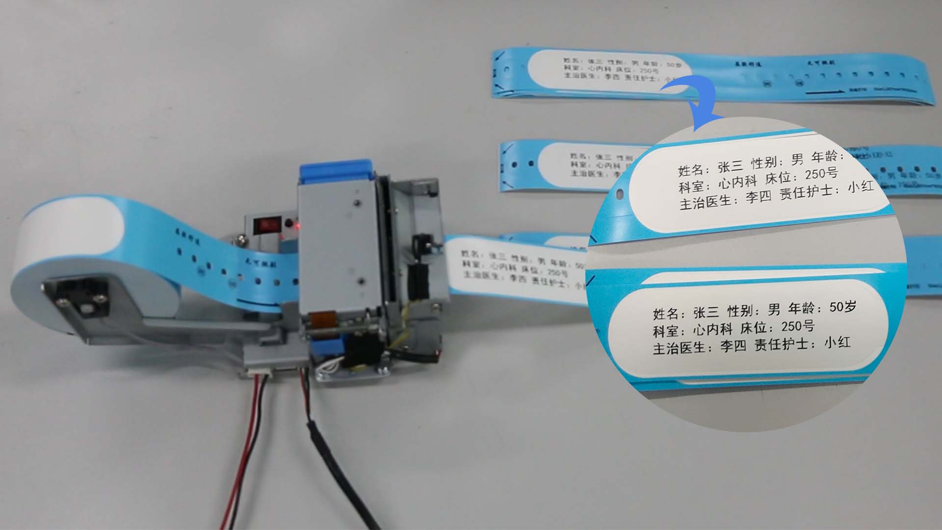 打印腕帶內(nèi)容是根據(jù)客戶自定義需求,對(duì)圖文信息及條碼等內(nèi)容打印,且能迅速將腕帶通過(guò)腕帶打印機(jī)打印出來(lái)。病人信息的顯示更規(guī)范,強(qiáng)韌耐用,打印精準(zhǔn);配備安全塑扣,佩戴合適便捷,一般使用環(huán)保材質(zhì),防止患者過(guò)敏。