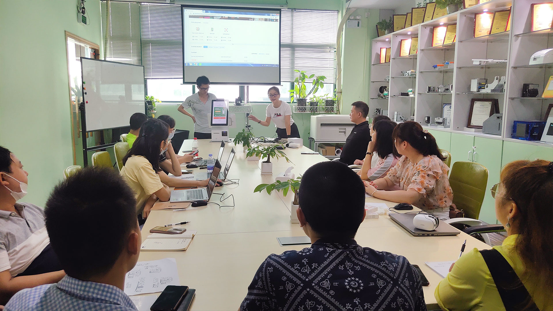產(chǎn)品線的發(fā)展應(yīng)當把質(zhì)量工作放在與市場開發(fā)同等重要位置。守住質(zhì)量紅線、提高質(zhì)量水平是美松集團的立足之本;做好專業(yè)技術(shù)培訓(xùn)、統(tǒng)一技術(shù)規(guī)范是向客戶提供高質(zhì)量服務(wù)的必要條件。在產(chǎn)品介紹環(huán)節(jié),市場運營專員熊艷艷、軟件工程師劉方以及研發(fā)工程師楊罡分別對產(chǎn)品進行了詳細的演示與講解。同時結(jié)合實際案例與參會人員進行了積極互動和交流分享。來自長沙公司的外貿(mào)負責人Amy就手持移動打印產(chǎn)品、智慧門店商超方案、桌面POS打印機使用及疑問,技術(shù)人員憑借其豐富的經(jīng)驗、扎實的專業(yè)知識以及對公司產(chǎn)品的深刻了解,讓大家對每一款產(chǎn)品的性能特點、使用方法、注意事項等有了更為全面的認識,并針對實際工作中常見的疑惑一一提問、擊破。短短半天的培訓(xùn)針對性強,效果顯著,大家紛紛加入討論,認真做好筆記。