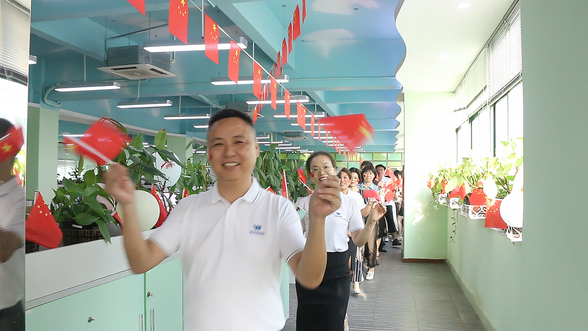 一大早,行政部與市場部的同事們就著手布置辦公室,五彩“生日快樂”氣球與“中國心”五星紅旗相呼應(yīng),營造出格外濃厚的國慶氛圍。全司上下在紅旗飄揚(yáng)下辦公,感嘆何其有幸生于你懷,承一脈血流淌,吾國萬疆以仁愛,這是我們千年不滅的信仰。