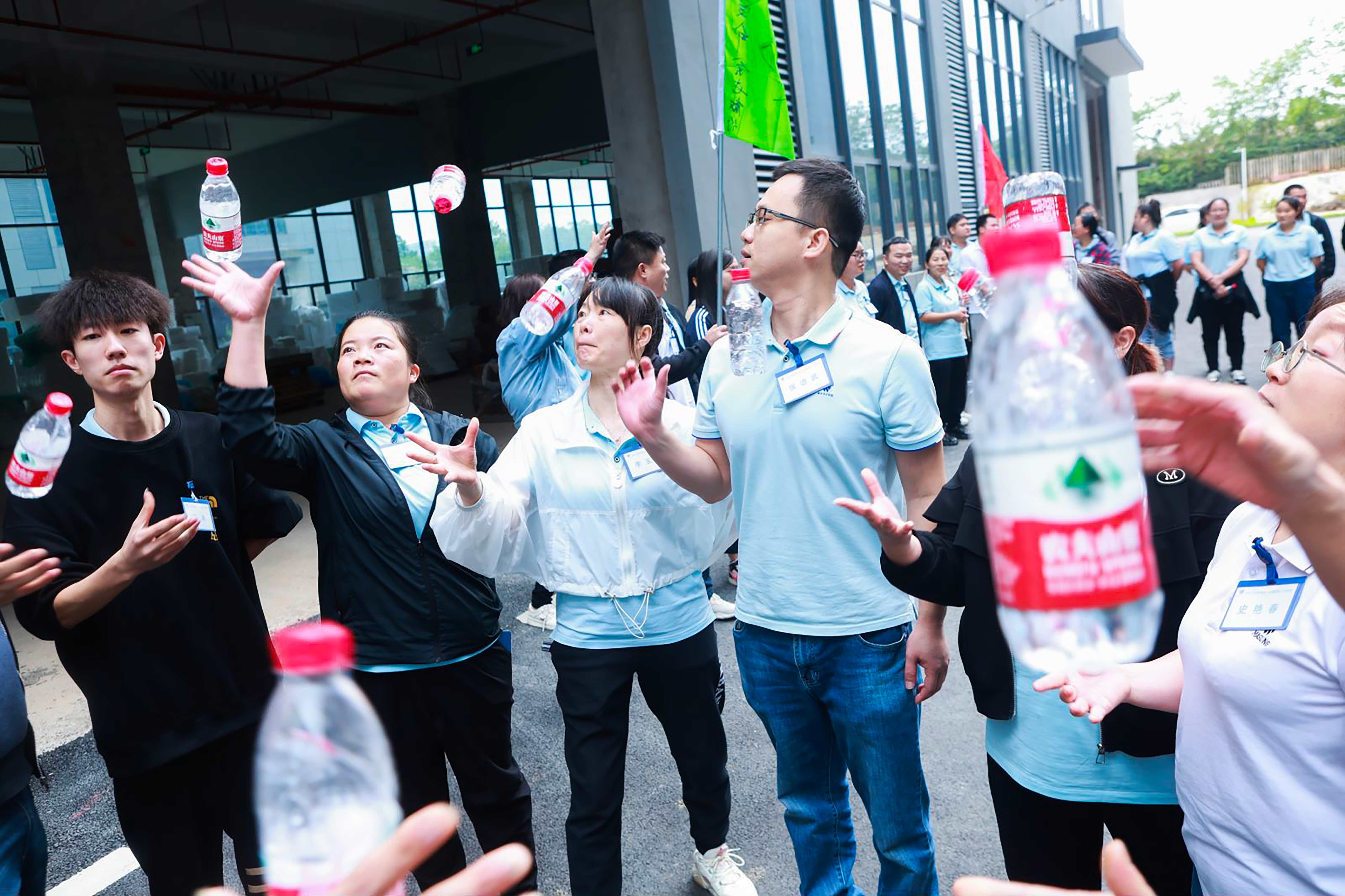 “能量動(dòng)力圈”項(xiàng)目將活動(dòng)推向高潮,大家激情澎湃,斗志昂揚(yáng),16支隊(duì)伍200余人緊緊的聚攏圍圈在一起,緊握首尾相連的繩子并用力拉緊保持圓形,按教練的要求整齊劃一地?fù)u圈若干次,挑戰(zhàn)每個(gè)人的極限,從開(kāi)始不及格的100個(gè)到成功挑戰(zhàn)666個(gè)的卓越表現(xiàn),讓我們看到了團(tuán)隊(duì)的震撼與力量。我們都知道螞蟻可以負(fù)重三十幾倍的自身重量,而我每個(gè)成員就像一只只螞蟻一樣充滿了無(wú)限的力量和潛能,當(dāng)我們每位員工在前方?jīng)_鋒陷陣的時(shí)候,背后都有一個(gè)強(qiáng)大的團(tuán)隊(duì)為他分擔(dān)重量。熔煉團(tuán)隊(duì)的過(guò)程,不僅提高了我們團(tuán)隊(duì)的凝聚力、向心力、責(zé)任感、100%執(zhí)行力,而且還增加我們所有員工之間的信任感與相互理解包容,團(tuán)隊(duì)與團(tuán)隊(duì)之間的互相協(xié)作精神也得到了升華。克服人性弱點(diǎn),決不放棄直到成功為止,為團(tuán)隊(duì)共同目標(biāo)的實(shí)現(xiàn)而努力奮斗!這過(guò)程更是感動(dòng)的不僅是我們團(tuán)隊(duì)的每一位成員,更有場(chǎng)外的董事長(zhǎng)陳斌先生,也親臨現(xiàn)場(chǎng)為我們的所有團(tuán)隊(duì)助陣吶喊鼓掌!