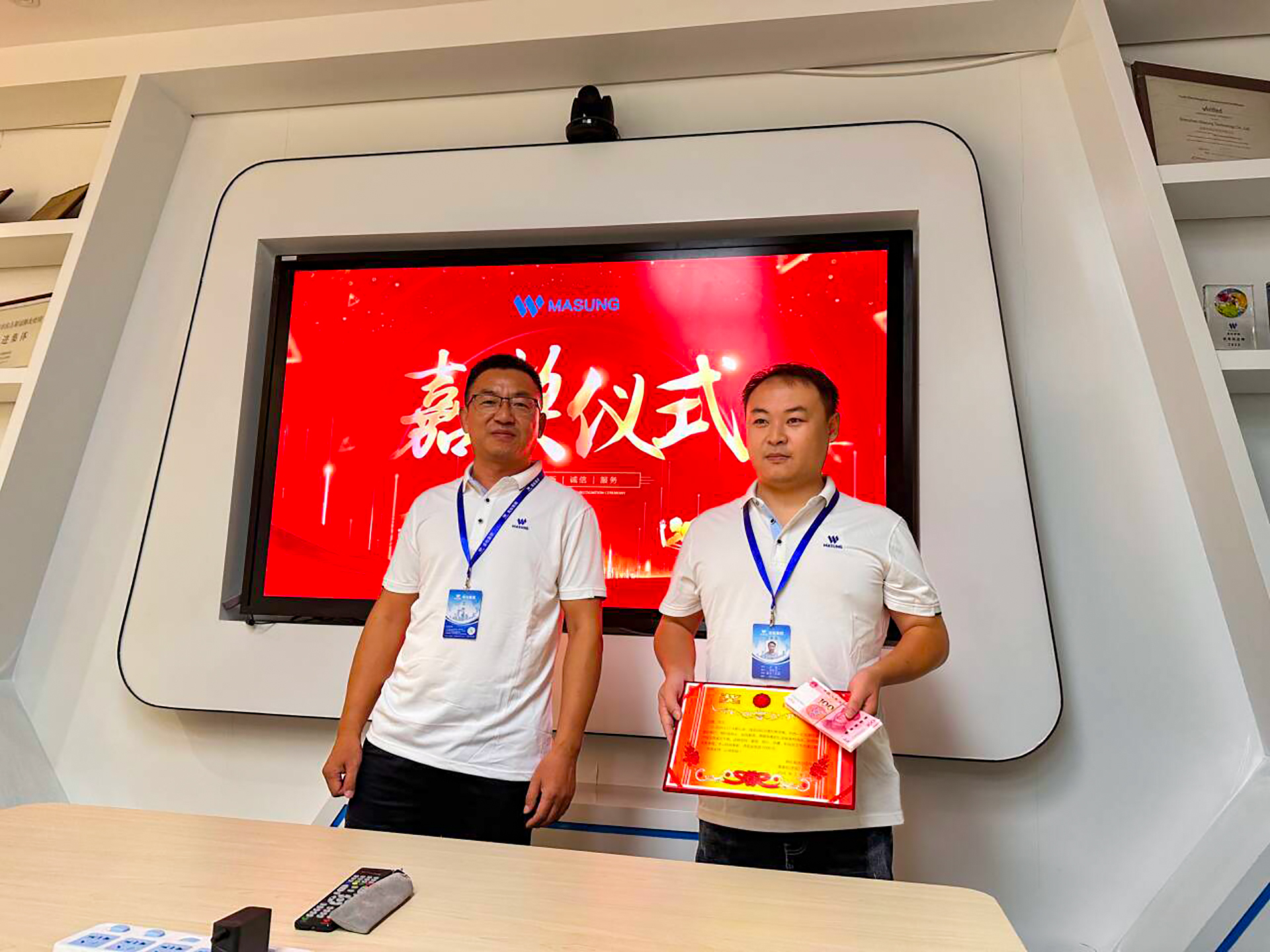 今天上午,美松集團深圳公司莊重而溫馨的會議室里舉辦了一場特別的表彰大會。大紅背景“嘉獎儀式”圖懸掛在大屏幕上,寓意奮進與希望的巨幅背景圖,明亮的燈光將整個空間點綴得光彩照人。會議室內每一個角落都洋溢著熱烈的氛圍和正能量,彰顯著公司對員工努力付出的充分認可與高度重視。