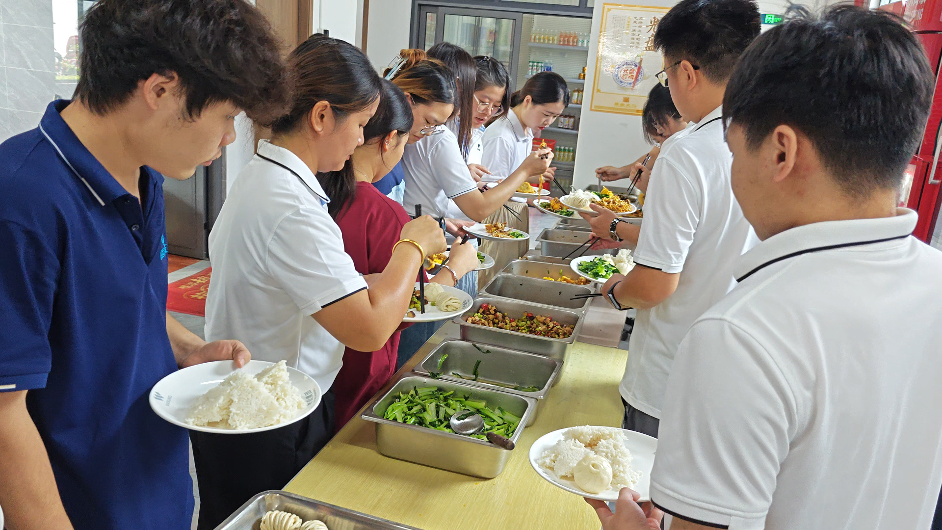 美松自有食堂中午時(shí)分迎來(lái)就餐小高峰,自助餐品類豐富、品控嚴(yán)格,肉類鮮嫩、蔬果新鮮、熱菜熱度適中,特色小吃與葷素食皆有專門(mén)區(qū)域,配餐區(qū)井然有序、衛(wèi)生標(biāo)準(zhǔn)高。整體設(shè)施齊全,環(huán)境舒適、就餐動(dòng)線順暢,展現(xiàn)出美松集團(tuán)在員工餐飲與后勤保障方面的細(xì)致用心。