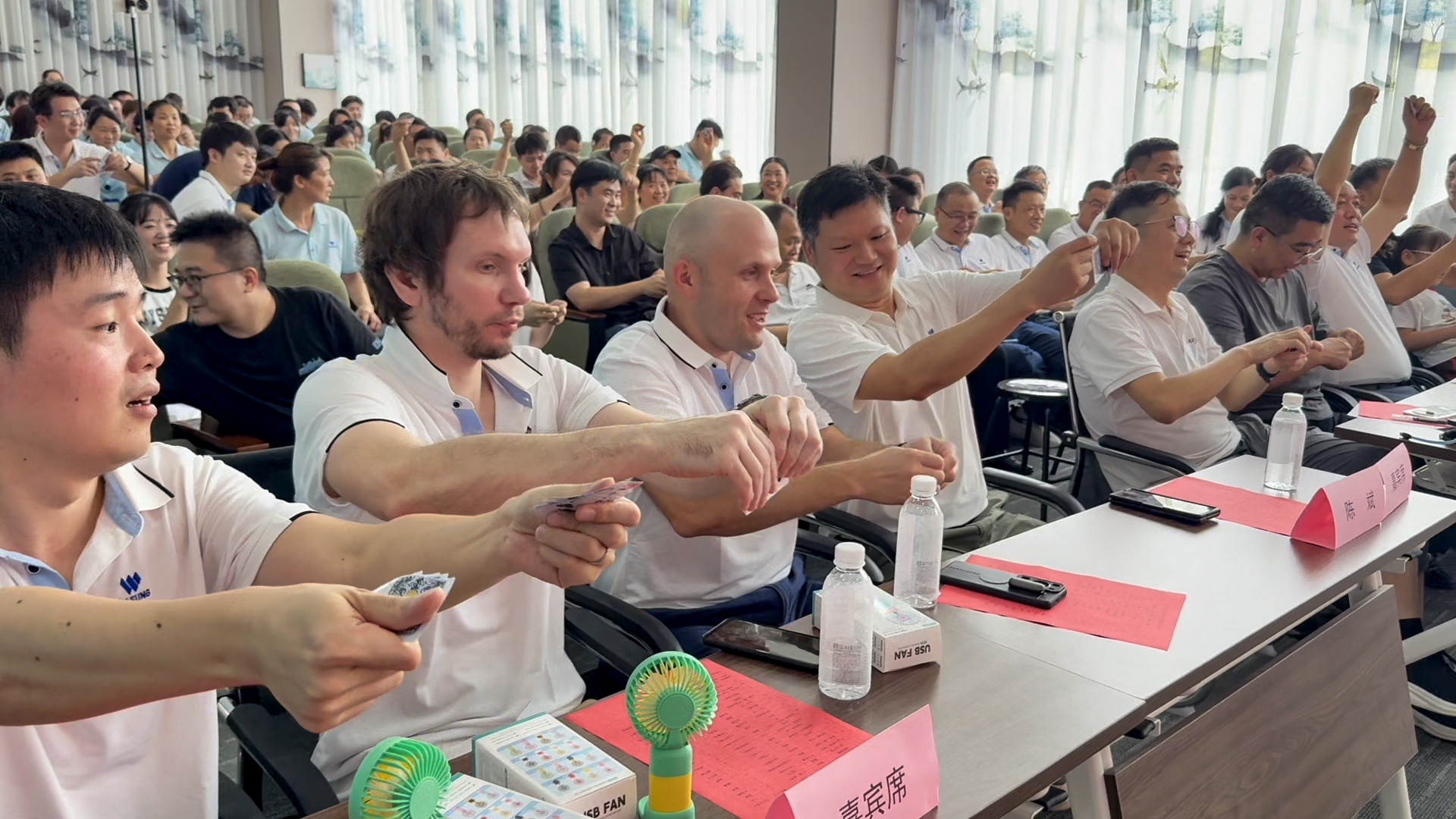 17點(diǎn)30分盛典晚宴,首先由熱情激昂的董助coco上臺(tái)發(fā)言,打開(kāi)了美松人與美松嘉賓們溫暖而激情的交流模式。餐桌上的對(duì)話、合作的契機(jī)在輕松的氛圍中展開(kāi),情感與商務(wù)的界線在這一刻變得模糊而自然。緊隨其后的抽獎(jiǎng)環(huán)節(jié),將整場(chǎng)年度盛典大會(huì)的熱度推向頂點(diǎn),現(xiàn)場(chǎng)互動(dòng)頻繁,笑聲與掌聲交織,幸運(yùn)與祝福在空中飄散,成為對(duì)美松員工辛勤付出最真切的回饋。