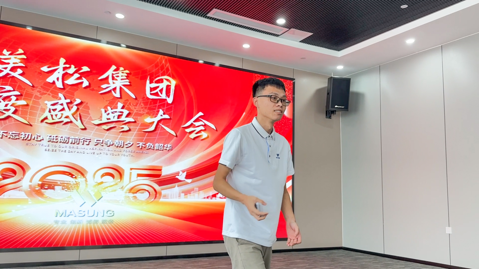 在第19個(gè)節(jié)目表演結(jié)束后評(píng)委緊張的打分間隙,舞臺(tái)聚焦落在了美松集團(tuán)總經(jīng)辦coco身上,她的成長(zhǎng)故事更是點(diǎn)燃全場(chǎng)。這位在美松深耕15年的老員工,用歸屬感,價(jià)值感與成長(zhǎng)空間與美松共生,這份榮譽(yù)與歲月的積淀,使她的發(fā)言格外具有穿透力。她以真誠(chéng)的語(yǔ)氣回顧自己從初入美松的青澀,到如今肩負(fù)重要管理職責(zé)的自信旅程;也見(jiàn)證了公司從10來(lái)人的團(tuán)隊(duì)發(fā)展至今,在行業(yè)內(nèi)具有一定影響的力量;從點(diǎn)滴崗位成長(zhǎng)到跨部門(mén)協(xié)同推進(jìn),從個(gè)人素養(yǎng)的持續(xù)提升到對(duì)公司愿景的堅(jiān)定擁護(hù),這些分享如同一面鏡子,照見(jiàn)了無(wú)數(shù)同事的努力與堅(jiān)持。她動(dòng)情的從“責(zé)任、信任、情懷、堅(jiān)定“四個(gè)維度展開(kāi)與美松人的成長(zhǎng)節(jié)點(diǎn),也表達(dá)了對(duì)未來(lái)的無(wú)限期待。只有大家保持初心持續(xù)學(xué)習(xí)才能將美松MASUNG品牌,美松的打印機(jī)產(chǎn)品,美松的完美服務(wù)帶向新的高度!最動(dòng)人心弦的一幕,是她對(duì)“認(rèn)同感與共同成長(zhǎng)”的真摯呼喊——愿越來(lái)越多的美松人愿意和她一樣,認(rèn)可美松、信任美松、與美松共同成長(zhǎng)。當(dāng)coco問(wèn)起現(xiàn)場(chǎng)美松人,是否愿意跟她一樣,與美松一起成長(zhǎng),5年,10年,20年,30年時(shí),掌聲雷動(dòng)之中聽(tīng)到的都是回應(yīng)聲:“好”!