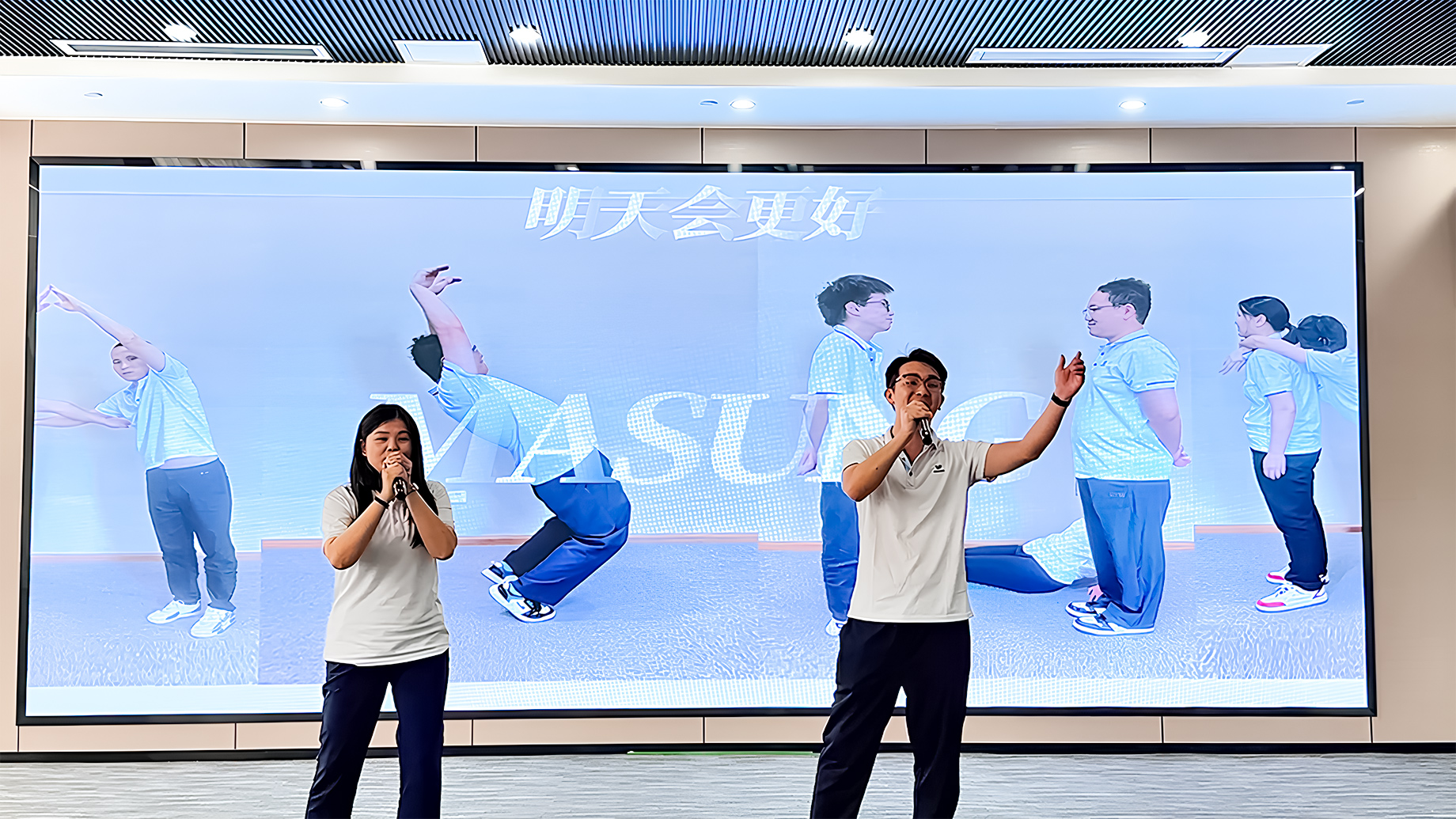 整場(chǎng)節(jié)目表演活動(dòng)都以“成長(zhǎng)”為主線,貫穿美松個(gè)人成長(zhǎng)、美松組織成長(zhǎng)與打印機(jī)行業(yè)成長(zhǎng)三位一體,強(qiáng)調(diào)“專業(yè)、創(chuàng)新、誠(chéng)信、服務(wù)”的美松價(jià)值文化。璀璨舞臺(tái)上,一場(chǎng)跨越時(shí)空的視聽(tīng)盛宴《無(wú)價(jià)烙印與美松傳承》-以負(fù)責(zé)人coco的身份獨(dú)白故事展開(kāi)的一部震撼的宣傳片,通過(guò)光影交織的鏡頭語(yǔ)言,帶領(lǐng)觀眾穿越美松的成長(zhǎng)歷程,19年的風(fēng)雨路程提醒著我們,真正的傳承不是停留在口號(hào),而是在每一天的細(xì)微行動(dòng)中繼續(xù)前行。無(wú)論是資深老員工,還是新加入的同事,都將在一起,把夢(mèng)想變成可感知的現(xiàn)實(shí)。以“恒進(jìn)”的步伐,致敬那些日常里追求極致的人;以堅(jiān)定的信念,迎接每一個(gè)新的挑戰(zhàn);因?yàn)橹灰覀兺?,必將勾勒出“匠心鑄就信賴”的美松品牌內(nèi)核:明天會(huì)更好!隨著音樂(lè)的響起,全體美松人都加入了和聲,歌聲中既有對(duì)過(guò)往合作的感恩,也有對(duì)未來(lái)共贏的期許.“讓我們的笑容充滿著青春的驕傲,為明天獻(xiàn)出虔誠(chéng)的祈禱!”大屏幕同步播放員工們自發(fā)用人體藝術(shù)形式展示的“MASUNG”LOGO珍貴影像,將現(xiàn)場(chǎng)氛圍推向高潮。這不僅是一場(chǎng)藝術(shù)盛宴,更是美松人對(duì)美松的深情告白:“無(wú)價(jià)烙印”象征著每個(gè)美松人與美松的深厚情誼;“美松傳承”寓意著未來(lái)攜手共進(jìn)的堅(jiān)定承諾。而“無(wú)價(jià)烙印與美松傳承”更是我們美松打印人的合作價(jià)值與美松精神。