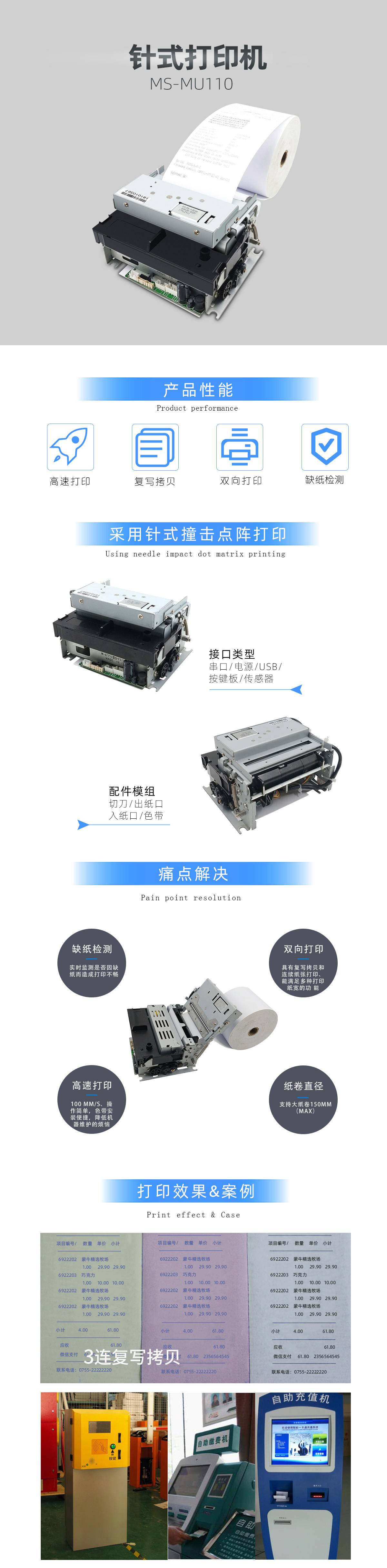 MS-MU110打印一體機(jī)是由原裝愛(ài)普生M-U110針式打印機(jī)機(jī)芯,與公司自主研發(fā)的針式打印機(jī)控制主板相結(jié)合的一款打印一體機(jī)MS-MU110,是一種針式撞擊點(diǎn)陣打印方式的打印機(jī),可靠性強(qiáng),打印速度快,具有復(fù)寫(xiě)拷貝和連續(xù)紙張打印的功能,控制板結(jié)構(gòu)小巧,操作簡(jiǎn)單,色帶安裝便捷,降低機(jī)器維護(hù)的煩惱。
