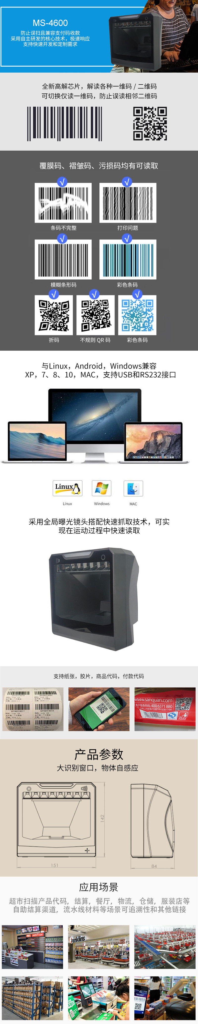 支持紙質(zhì),薄膜類,商品碼,付款碼讀取