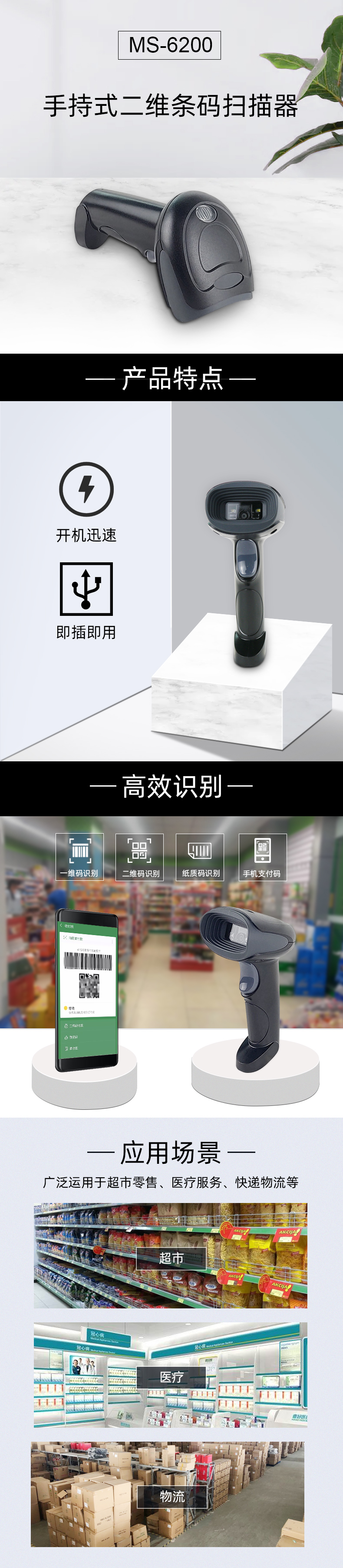 二維碼有線掃描槍MS-6200