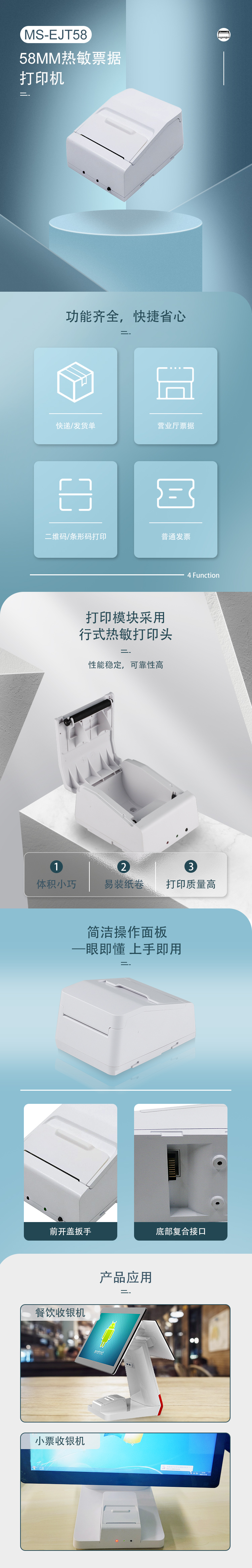 美松(MASUNG)MS-EJT58打印模塊采用行式熱敏打印頭, 它具有高速打印、噪聲低、可靠性強(qiáng)、打印質(zhì)量高、切紙厚度大、結(jié)構(gòu)小巧等特點(diǎn), 使安裝維修更方便快捷。