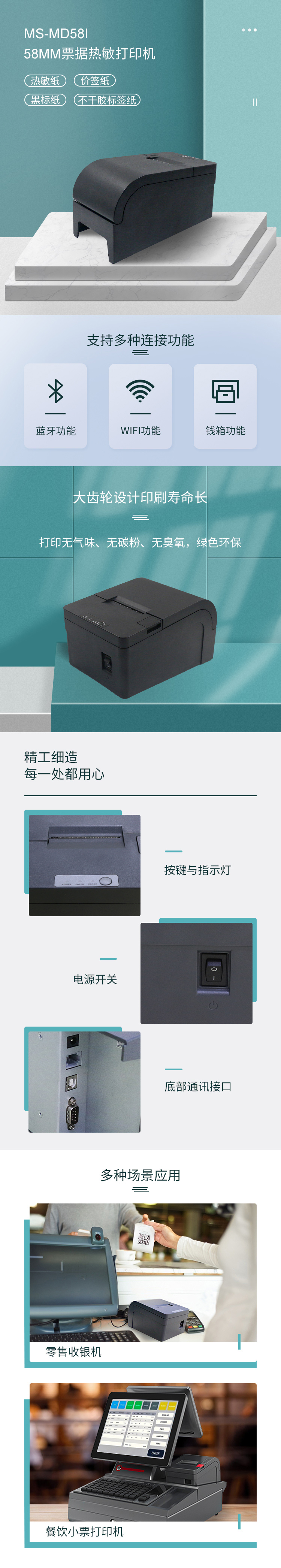 ⑩優(yōu)質(zhì)選材 質(zhì)量可靠。長壽命齒輪、形式熱敏打印機頭以及較低的返修率、獲得了客戶—致好評,是您開店的好幫手。