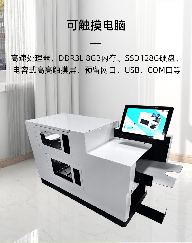 可觸屏的電腦具有高速處理器,DDR3L 8GB內(nèi)存、SSD128G硬盤、電容式高亮觸摸屏、預留網(wǎng)口、USB、COM口等