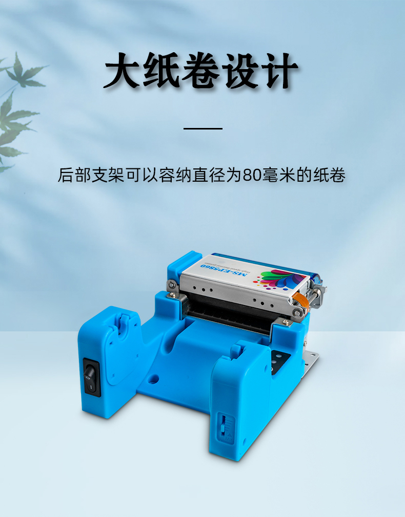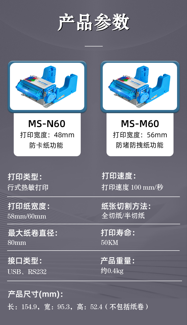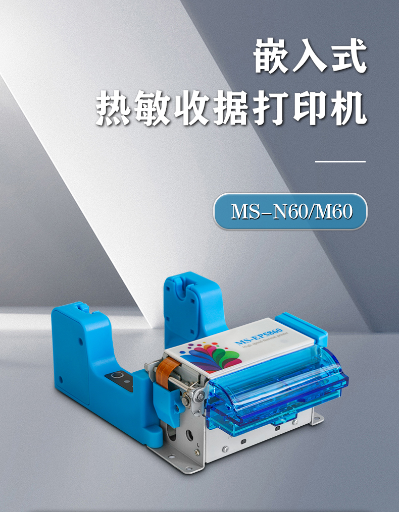 MS-N60打印的尺寸為48mm;MS-M60打印的尺寸為56mm,帶防堵防拽紙功能。