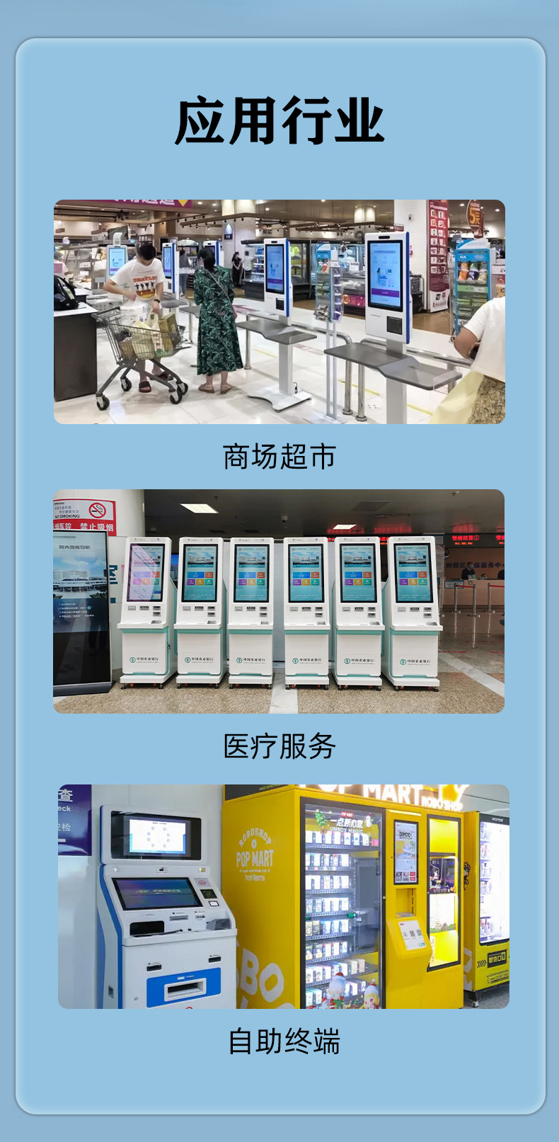 車載 POS、閘機(jī)、門禁、電商自提柜、藥品售賣柜、自助查詢、排隊(duì)叫號(hào)、金融、醫(yī)療、快遞、收銀等自助設(shè)備等,對(duì)電子屏碼應(yīng)用場景尤為適合。