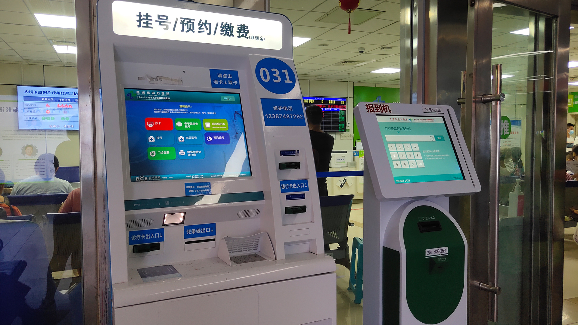 醫(yī)療機(jī)構(gòu)通過在醫(yī)院的各大廳、住院部等位置配置自助設(shè)備,使用方便,只需要將卡插入機(jī)器,患者就可以隨時繳費(fèi)掛號或打印自己的檢驗(yàn)報告,就像ATM機(jī)(自助取款機(jī))里取錢一樣方便,能夠?yàn)榛颊吖?jié)省等候時間。