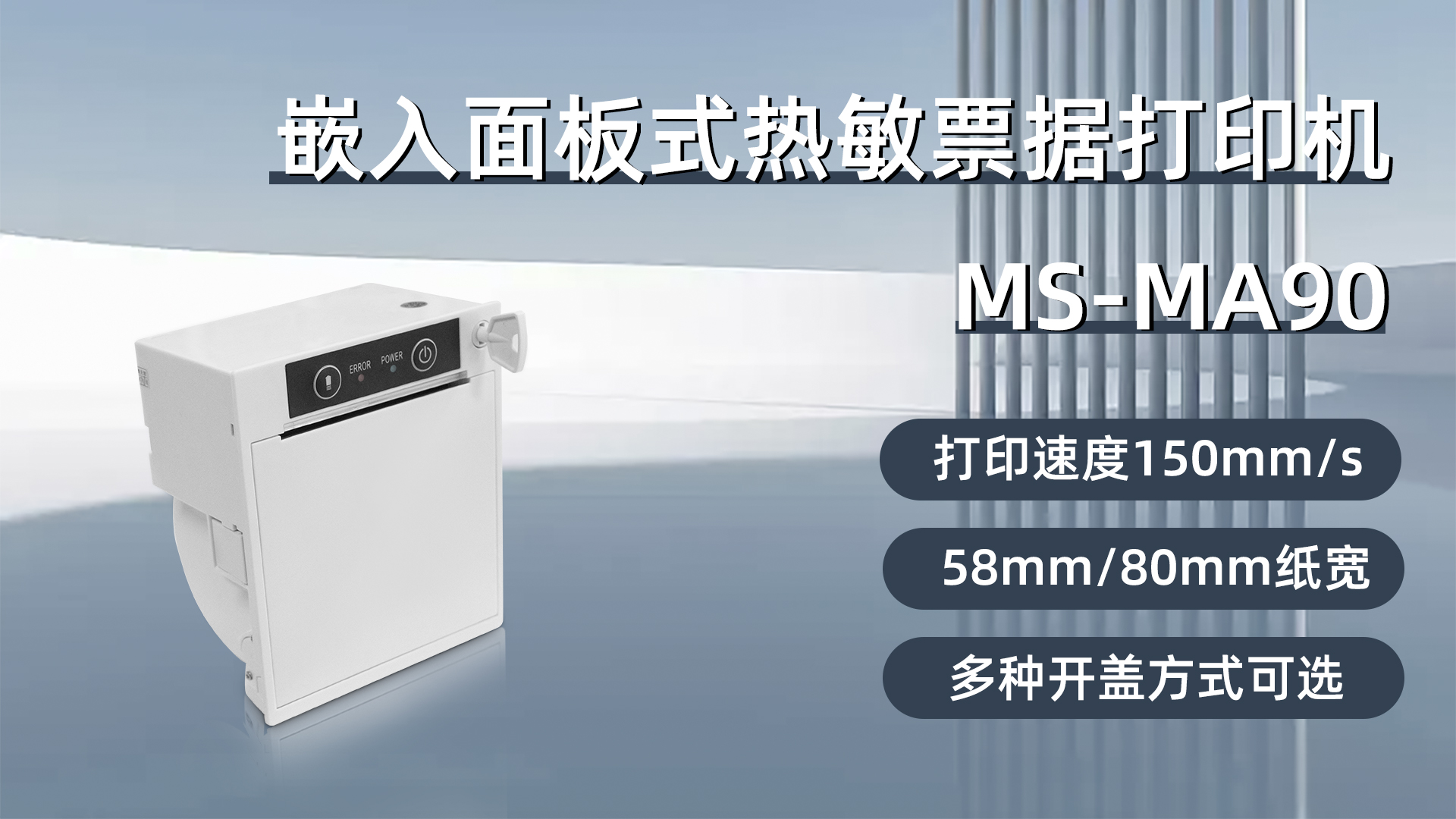 美松 MS-MA90熱敏高速內嵌式打印機具有黑、白可選的外觀顏色,可以根據(jù)終端設備的整體風格進行選擇,使得終端設備更加美觀大方。此外,該打印機還提供三種開蓋方式可選,分別是手動扳手開蓋、鑰匙開蓋、電子鎖開蓋,用戶可以根據(jù)實際需求選擇最適合的開蓋方式,方便快捷。