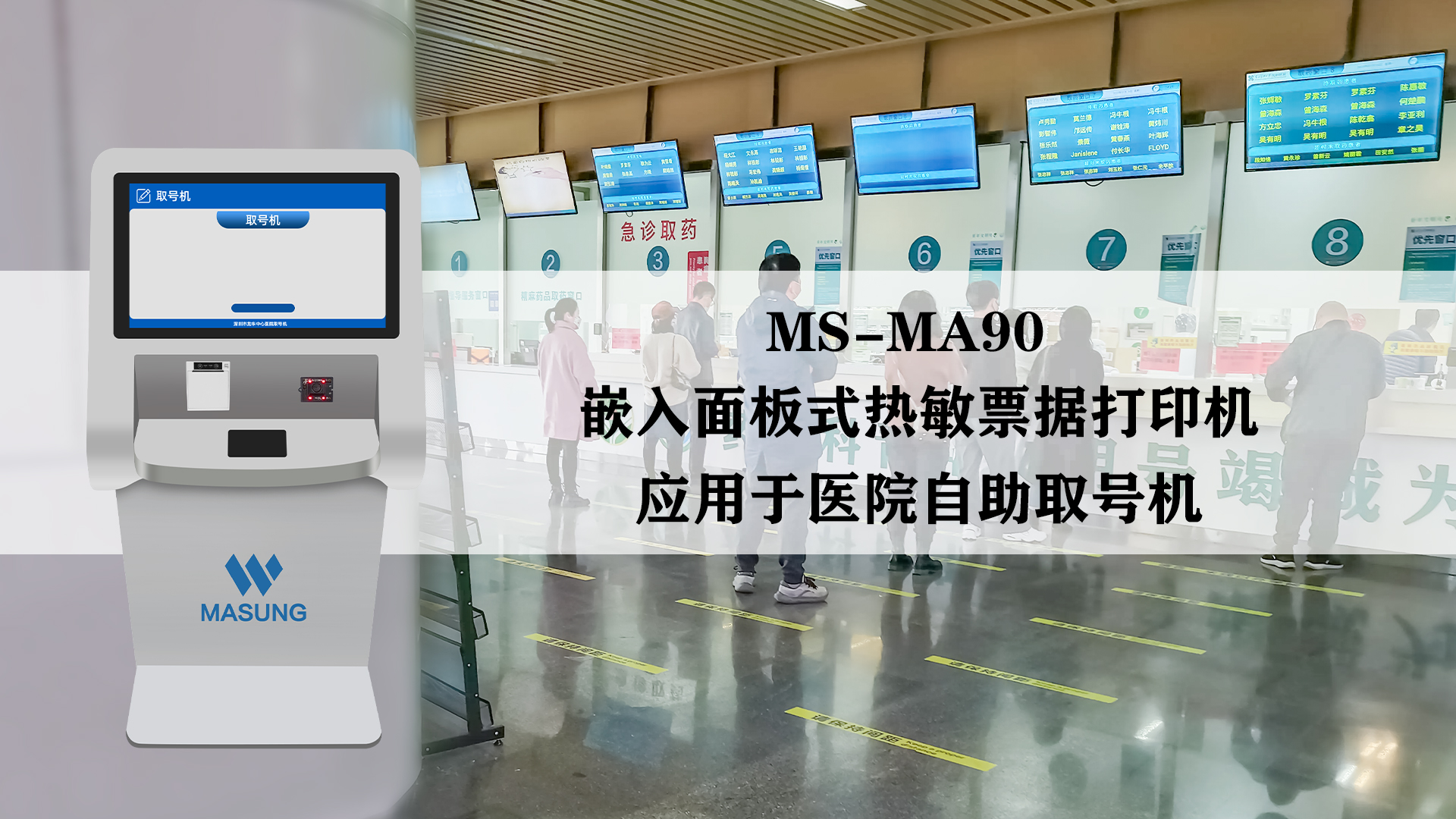在醫(yī)院的快節(jié)奏環(huán)境中,為了提高效率并為患者提供更便捷的服務(wù),自助設(shè)備的應(yīng)用越來(lái)越廣泛。其中,醫(yī)院自助取號(hào)機(jī)是醫(yī)院里一種常見(jiàn)的設(shè)備,可以幫助患者快速掛號(hào)、繳費(fèi)、打印報(bào)告等。在醫(yī)療行業(yè)中,自助取號(hào)系統(tǒng)無(wú)疑已成為提高醫(yī)院效率和改善就醫(yī)體驗(yàn)的重要渠道。其中,MASUNG MS-MA90是一款專為醫(yī)院自助取號(hào)機(jī)設(shè)計(jì)的80mm熱敏票據(jù)打印機(jī),具有以下特點(diǎn)和優(yōu)勢(shì):